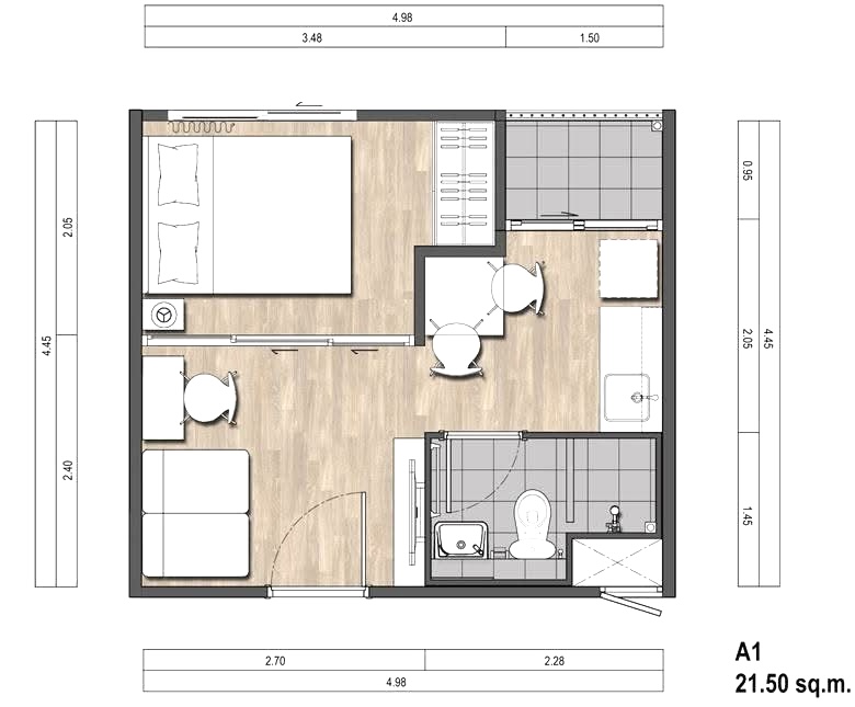 sq308: เฟส1 ชั้น2 (1,160,000) 22 ตรม. กั้นห้องนอน ราคาพิเศษ ขายพร้อมผู้เช่า